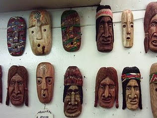 madera [33] - Máscara mapuche de madera con cuchillo de