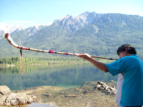 Cultura mapuche: música con la trutruca (cuerno largo) al