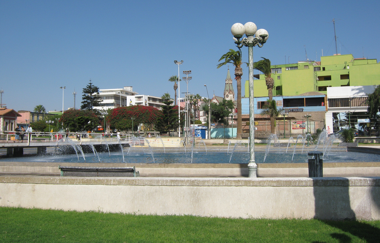 Brunnen mit einem grossen Bassin, wo Tauben und