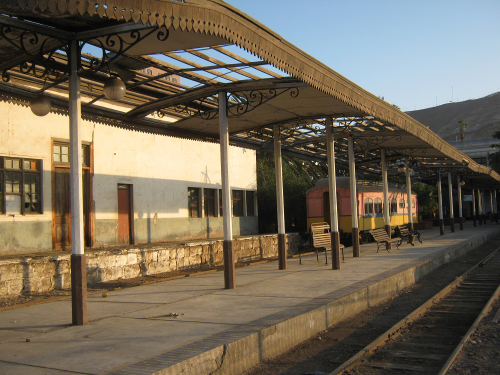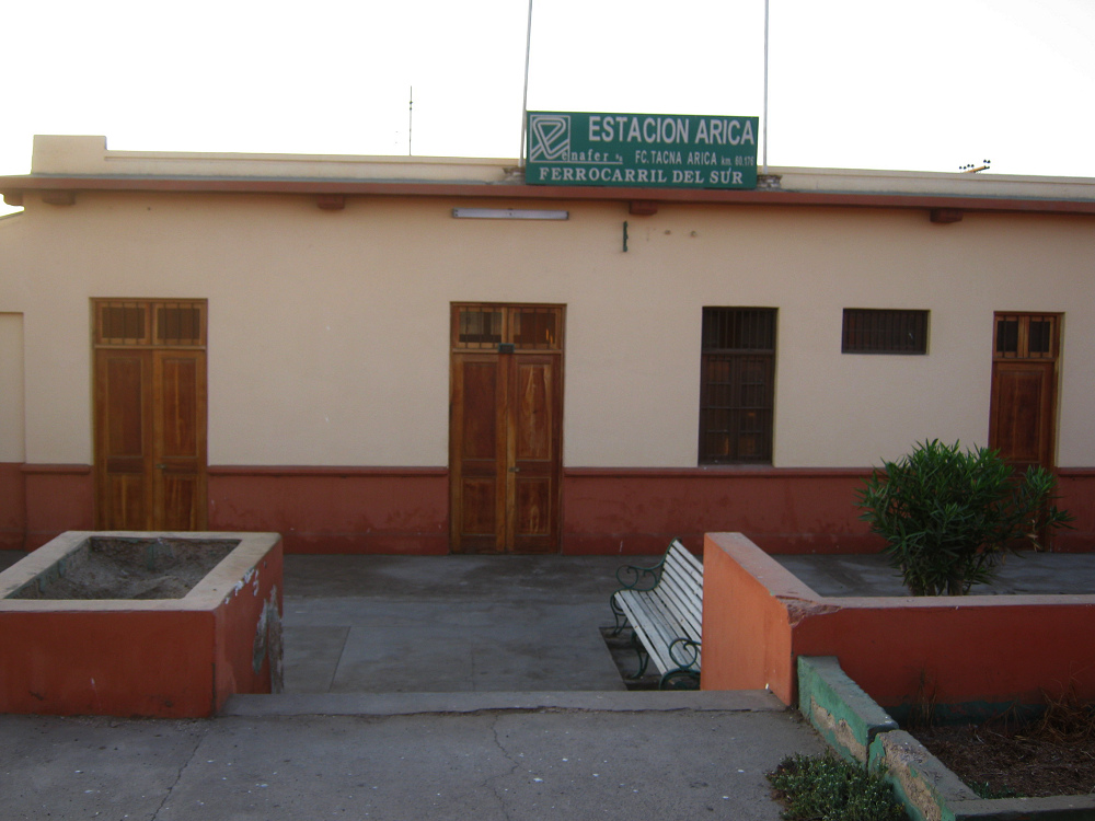 Arica: Die Bahnstation nach Bolivien, Gebäude mit Bahnsteig (01)