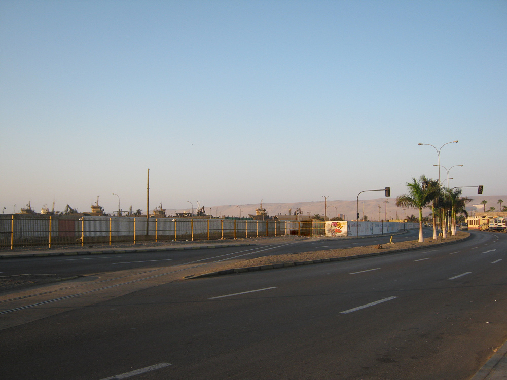 Dieser grosse Hafen von Arica provoziert in Arica eine grosse Traurigkeit, weil das Stadtzentrum vom Meer abgeschnitten wurde. Die Reichen von Arica waren wirklich dumm, diese grosse Bucht von Arica für den Hafen herzugeben, und so wurde die Sicht aufs Meer versperrt. Das schmerzt sehr.