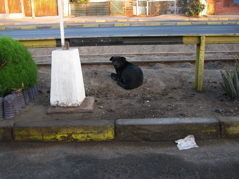 Dieser Chusco-Hund erscheint gut erzogen und bewacht das Geleise. ¡¡Die Regierungen verstreuen nur Traurigkeit und wollen nicht vom Tourismus profitieren, der mit diesem Zug möglich wäre!!