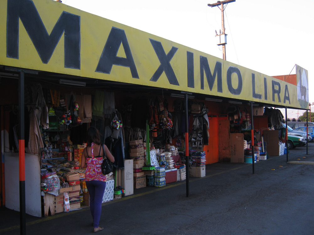 Hier sehen wir den Beginn des grossen Sonntagsmarkts von Arica, der auf der rechten Hälfte der Chacabuco-Allee stattfindet. Jeden Sonntag findet dieser Markt statt, ein Erlebnis für viele.