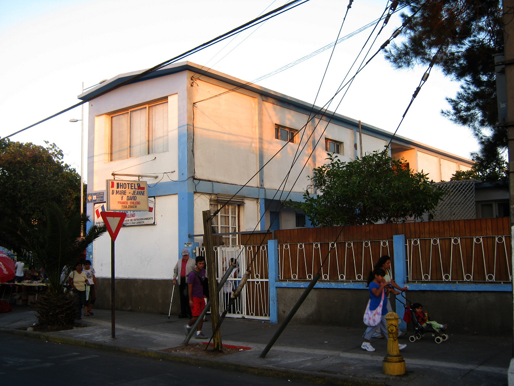 Kreuzung Chacabuco-Allee / General Velasquez-Strasse, kleines Hotel "Marie Jeanne y David", Tafel