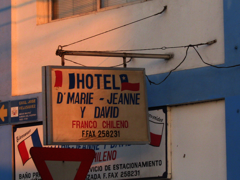 Kreuzung Chacabuco-Allee / General Velasquez-Strasse, kleines Hotel "Marie Jeanne y David", Tafel, Nahaufnahme