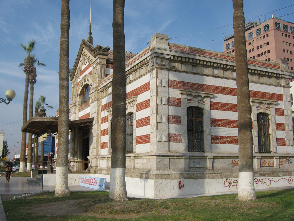 Am 19. April 2010 machte ich einen weiteren Spaziergang, der mich in die Pratstrasse ("calle Prat") führte. Es war ein Nebeltag, und ich suchte ein günstiges Restaurant im Zentrum von Arica. Zuerst fand ich das LAN-Büro im "Geschäftsturm". Ja, von diesem Büro der Fluggesellschaft LAN sollte man wissen, wo es ist. Leute, die nach Santiago fliegen wollen, buchen hier den täglich angebotenen Flug, um die Busreise von 26 Stunden zu vermeiden. Leute, die nach Lima fliegen wollen, können aber nicht von Arica aus fliegen, sondern müssen zuerst mit dem Zug oder mit dem Bus nach Tacna reisen und dort ins Flugzeug steigen. Eine Busreise zwischen Arica und Lima dauert zwei Tage. Warum ist das so? Weil die "Panamericana" oft 100e von Kurven hat und weil Brücken oder Tunnels fehlen. Also, man unterhalte sich gut auf langen Busreisen! Wir sind in Süd-"Amerika"!, und Zugverkehr gibt es praktisch nicht, weil die schweinischen Regierungen den Zugverkehr verrotten lassen in der Meinung, dass Zugverkehr sich nicht lohne. So ist es in Peru, so ist es in Uruguay, so ist es in Chile, und neue Zugstrecken werden nicht gebaut. Die sind so dumm!