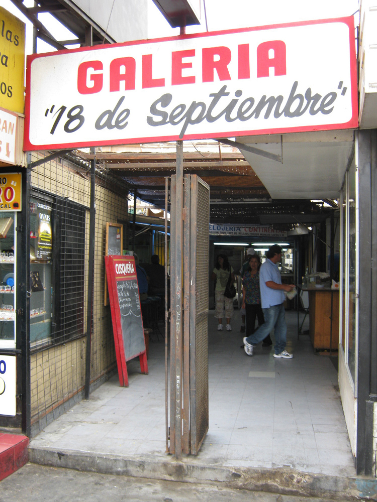 Ich suchte immer noch ein günstiges Restaurant und kam schlussendlich in diese Galerie an der Strasse 18. September (calle 18 de Septiembre).