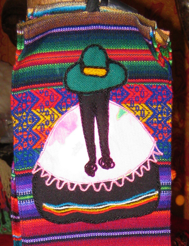 Das Kunsthandwerkzentrum an der Kolumbusstrasse, Weberei über Arica, die Sierra-Bewohnerin, Nahaufnahme
