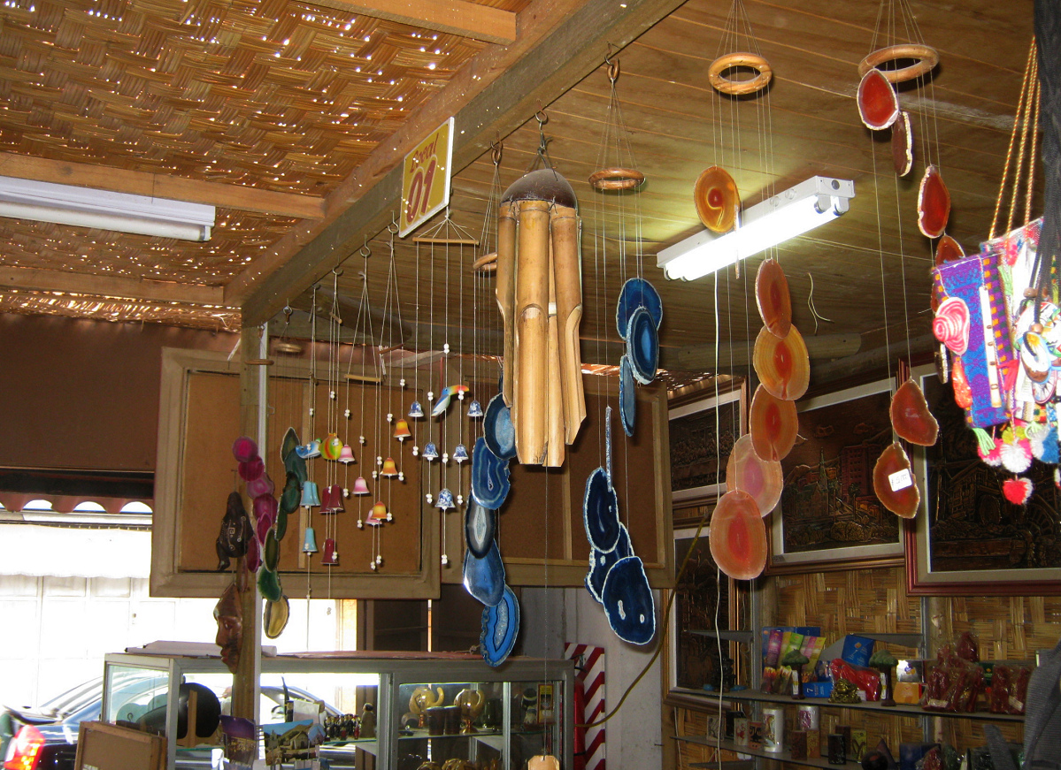 Das Kunsthandwerkzentrum an der Kolumbusstrasse, Mobiles aus wertvollen Steinen, aus Bambus, und aus Keramik