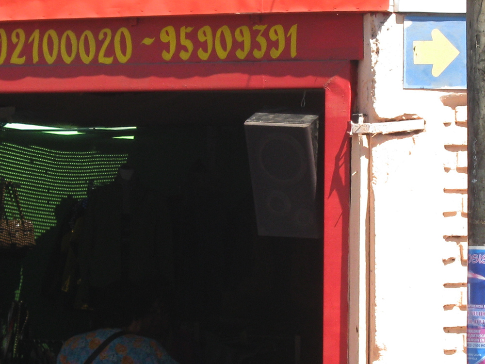 Das Geschäft Fardobella (03), ein musikterroristisches Geschäft mit einem Lautsprecher auf der rechten Seite, der nach aussen gerichtet ist