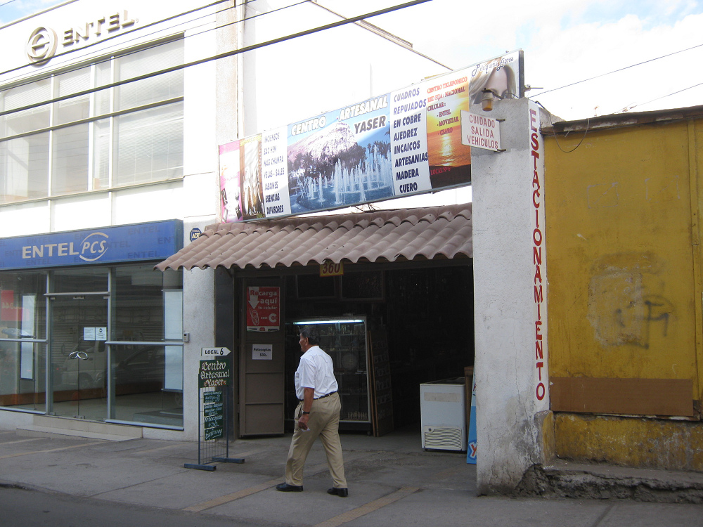 Das Tourismusbüro "Sernatur" - das LAN-Büro - ein "Schweizer Zentrum" ("centro Suizo") - Restaurants - Graffiti mit Geoglyphen und Petroglyphen - Abfall mit Hund - Saftbar - Hotel mit "Internetsaal" - Militarismus - Zentrum für Kunsthandwerk - Musikterror aus dem Geschäft "Fardobella"