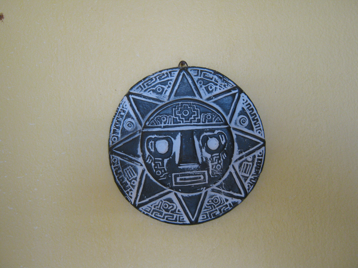 Grafik einer Sonne, mit einem Mensch, Frosch, Uhu