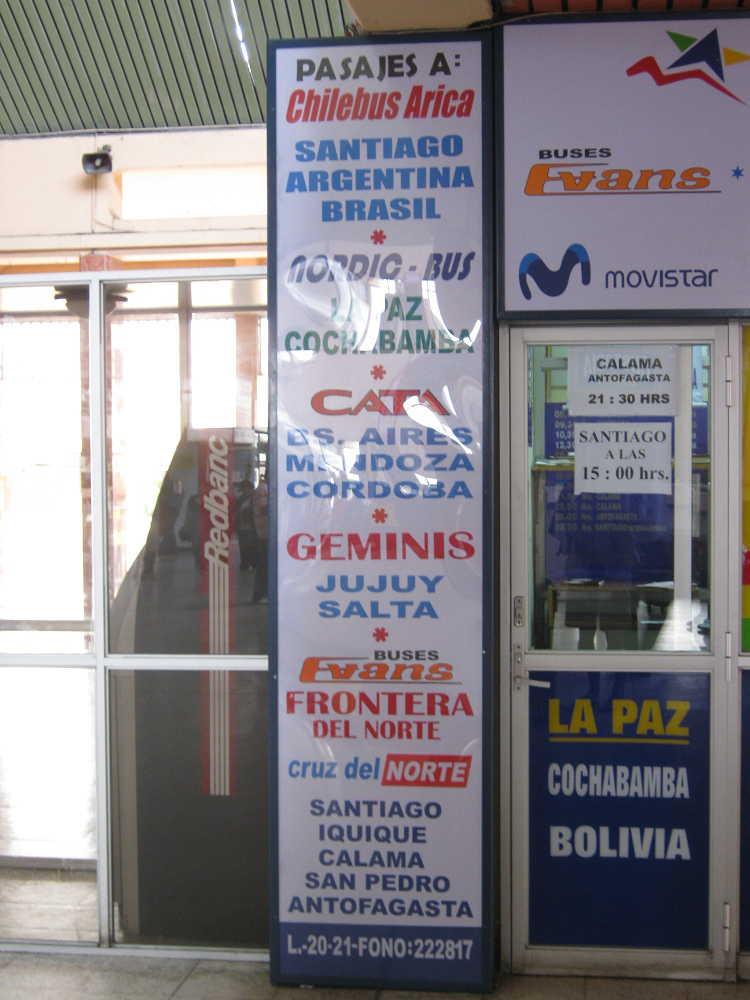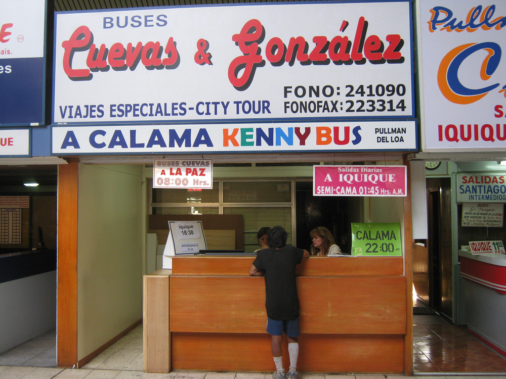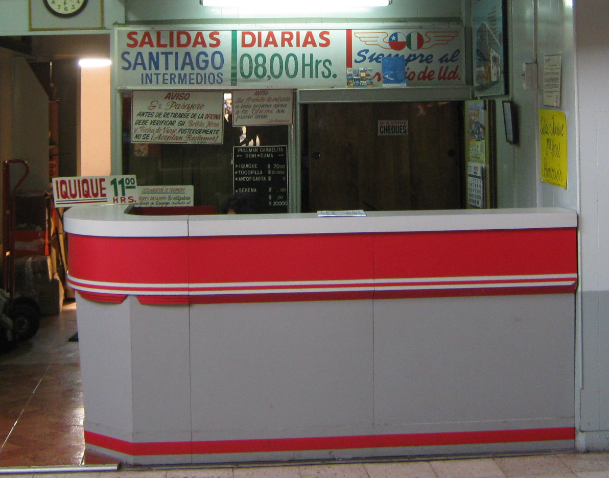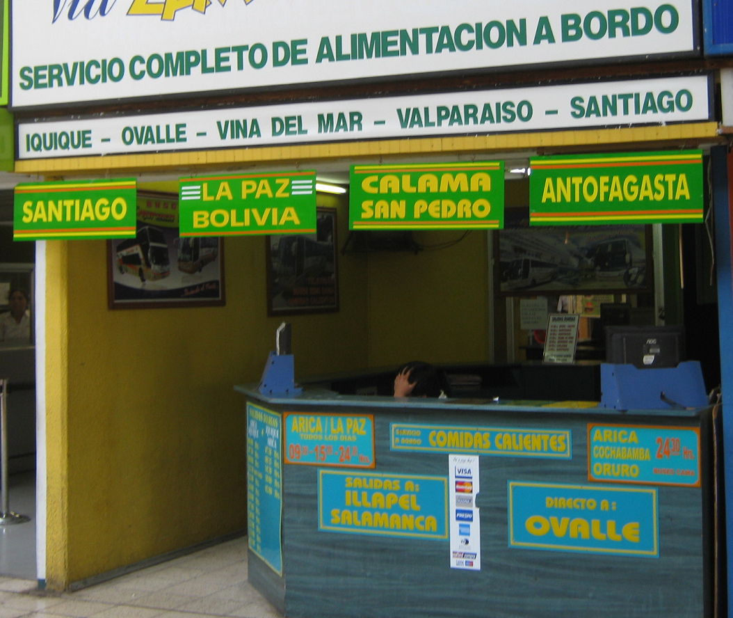 Schalter der Busfirma Chilebus, die grosse Tafel mit