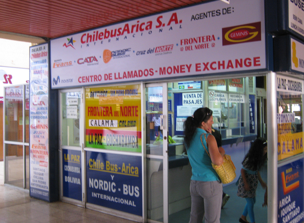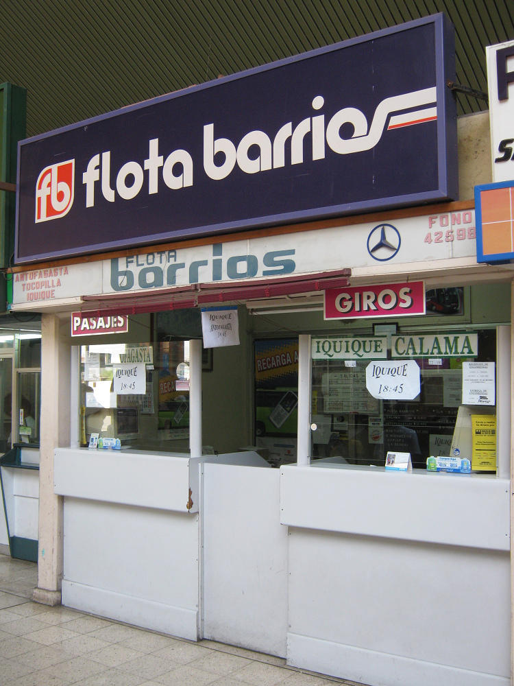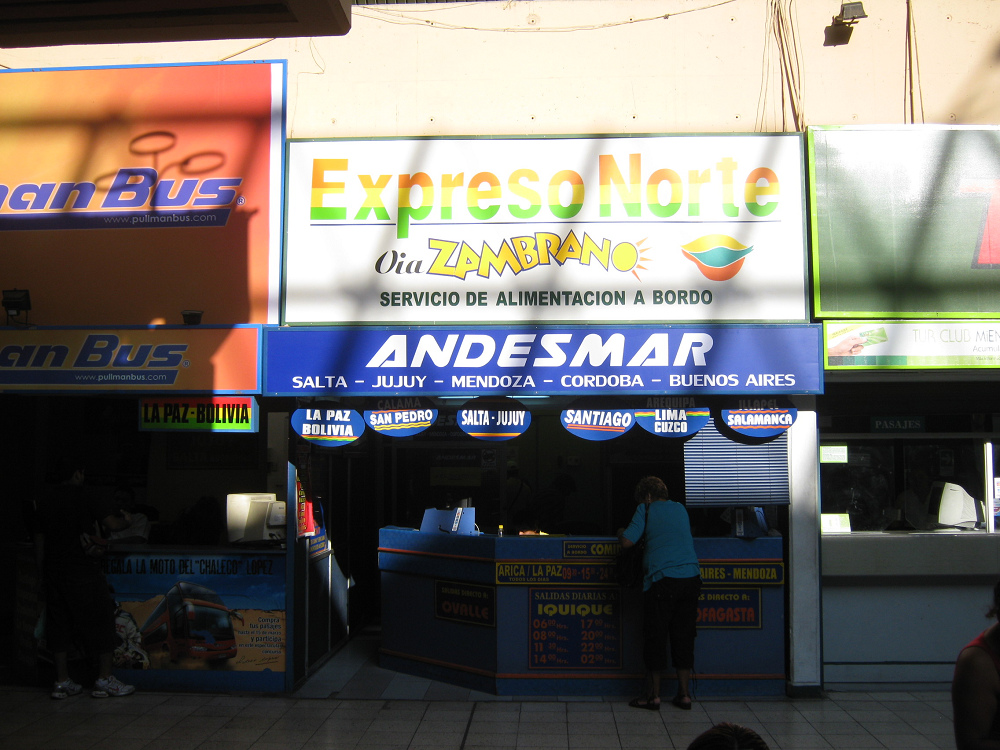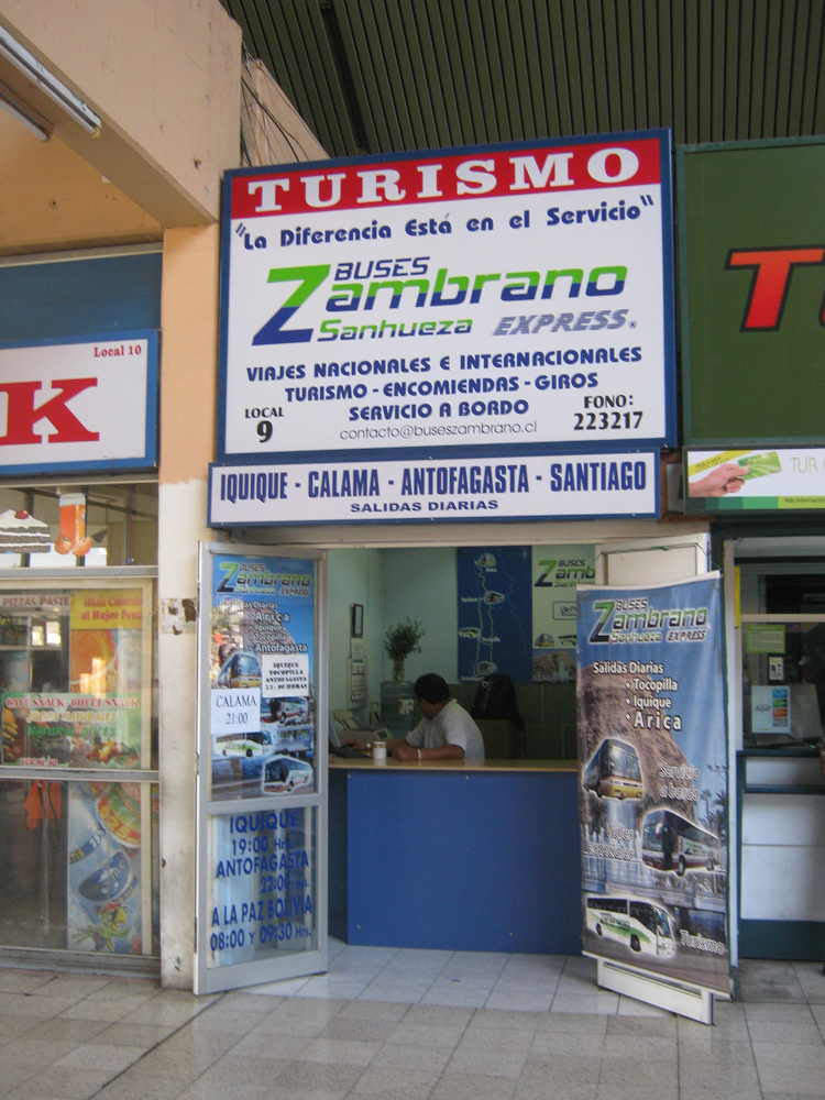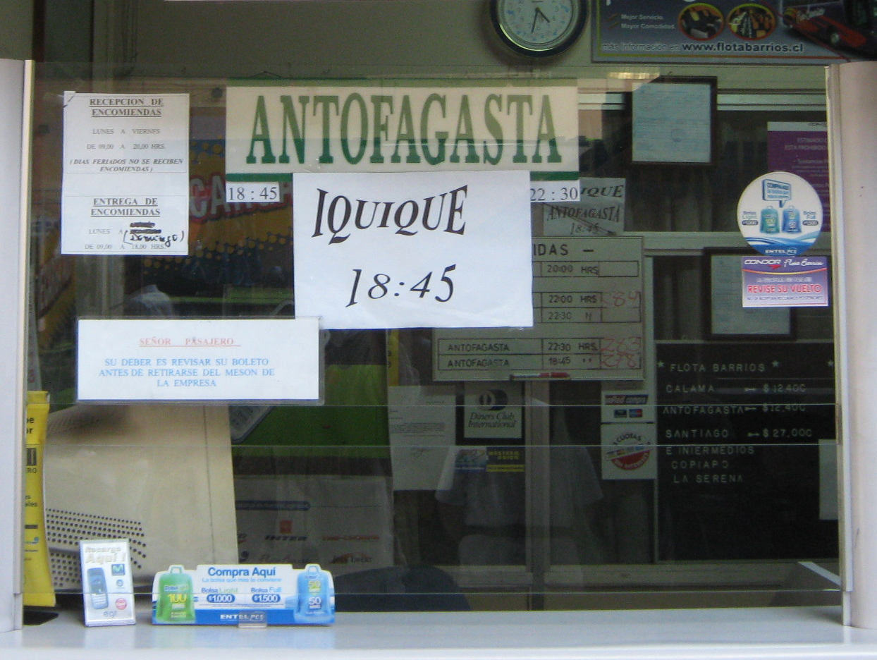Schalter der Busfirma Chilebus, die grosse Tafel mit
