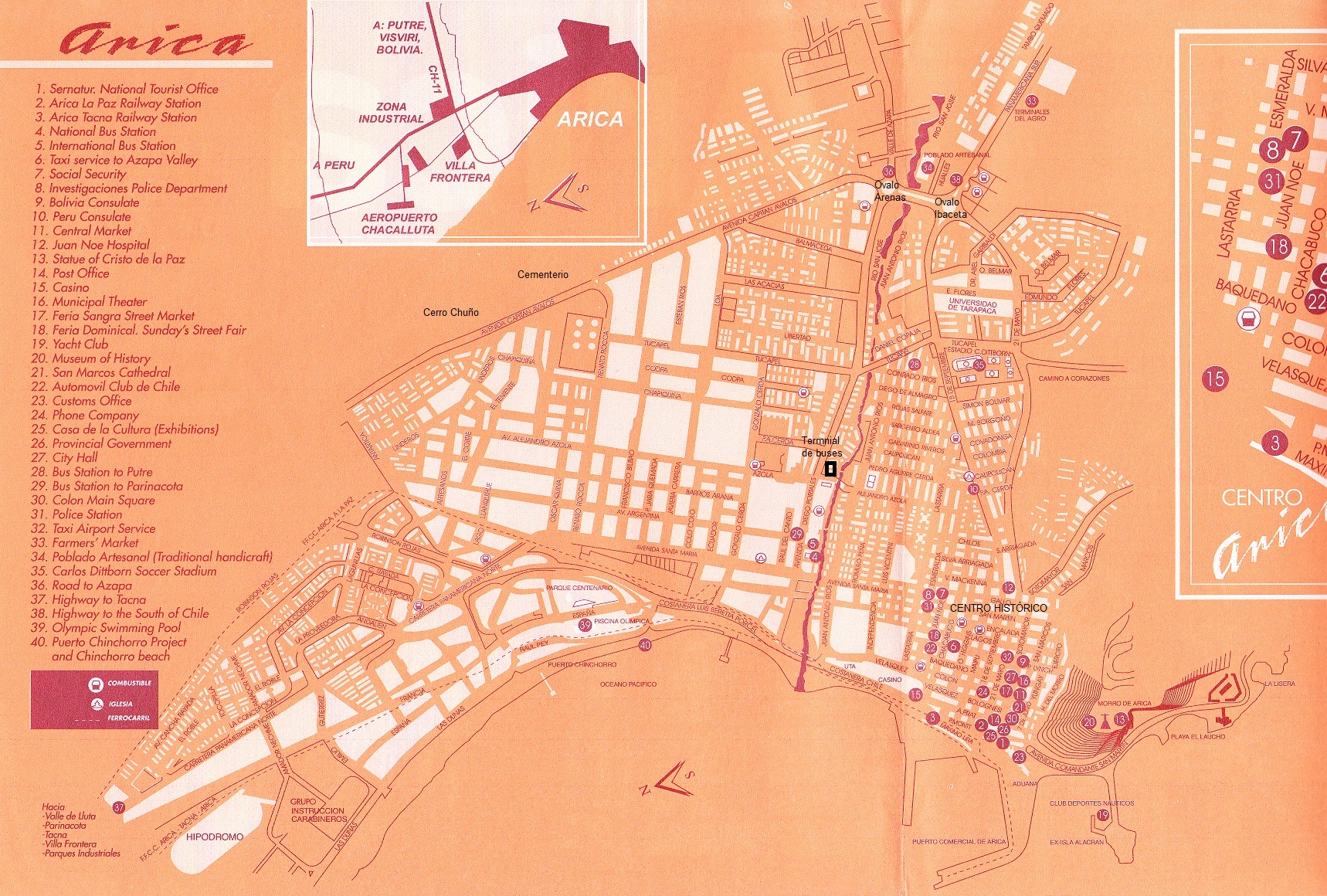 sowie von Arica nach Iquique, Tocopilla, Michilla, y