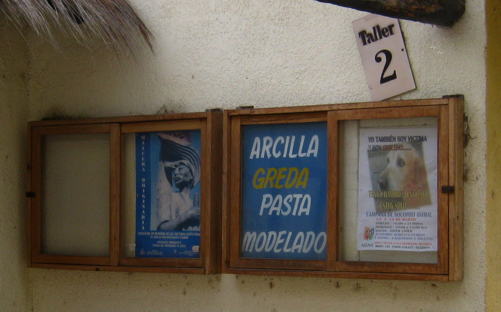 (orig.: "Aquí, en el Poblado Artesanal, nació la