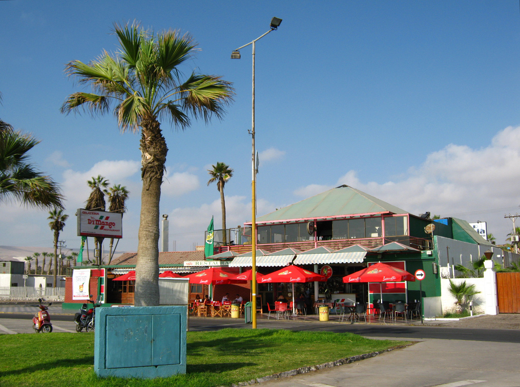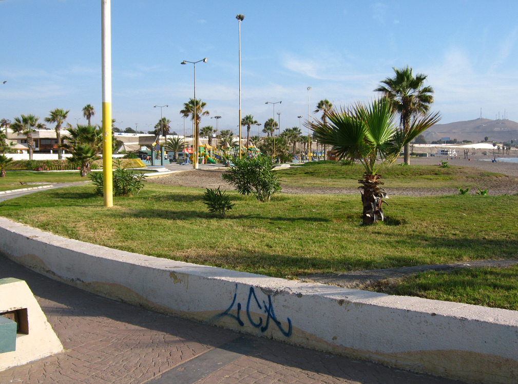 Nun verliess ich das Stadiongelände wieder der Eisenbahnlinie entlang, kam wieder an den kleinen Platz und dann zum italienischen Restaurant. Die Strandpromenade des Chanchorrostrands verfügt auch über einen Kinderspielplatz.