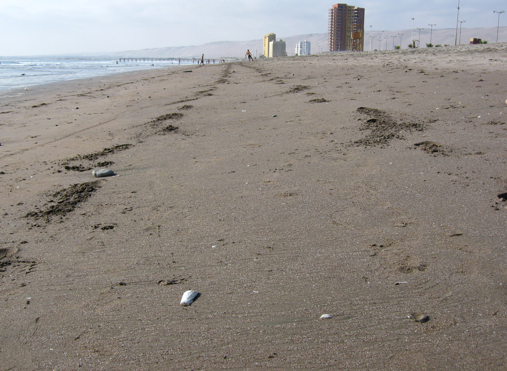 Mövenspuren und andere Spuren am Chinchorrostrand