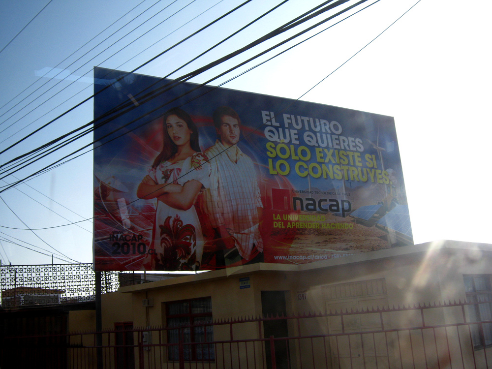 Auf dem Rückweg kam der Bus an der St. Marien-Allee (avenida Santa María) an diesem riesigen Poster vorbei. Das Foto ist durch die Fensterscheibe aufgenommen, deswegen sind da Reflexionen im Foto.