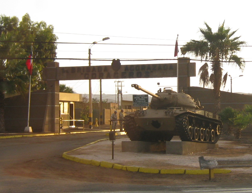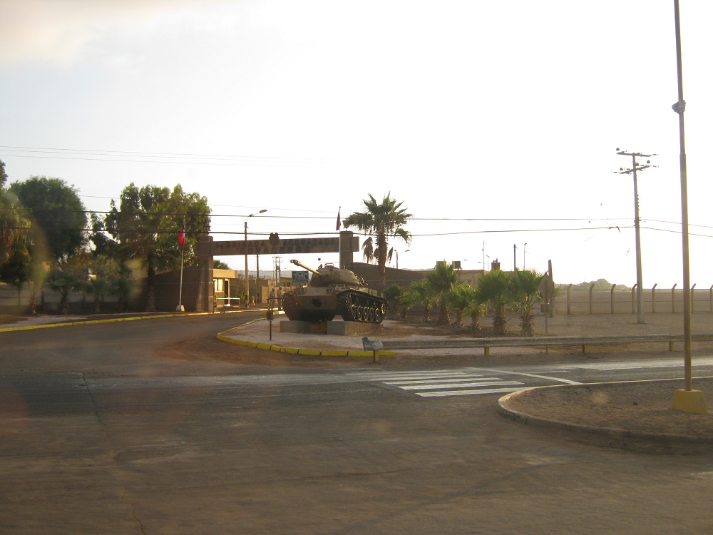 Brigade, der mit einem Panzer "geschmückte" Eingang,