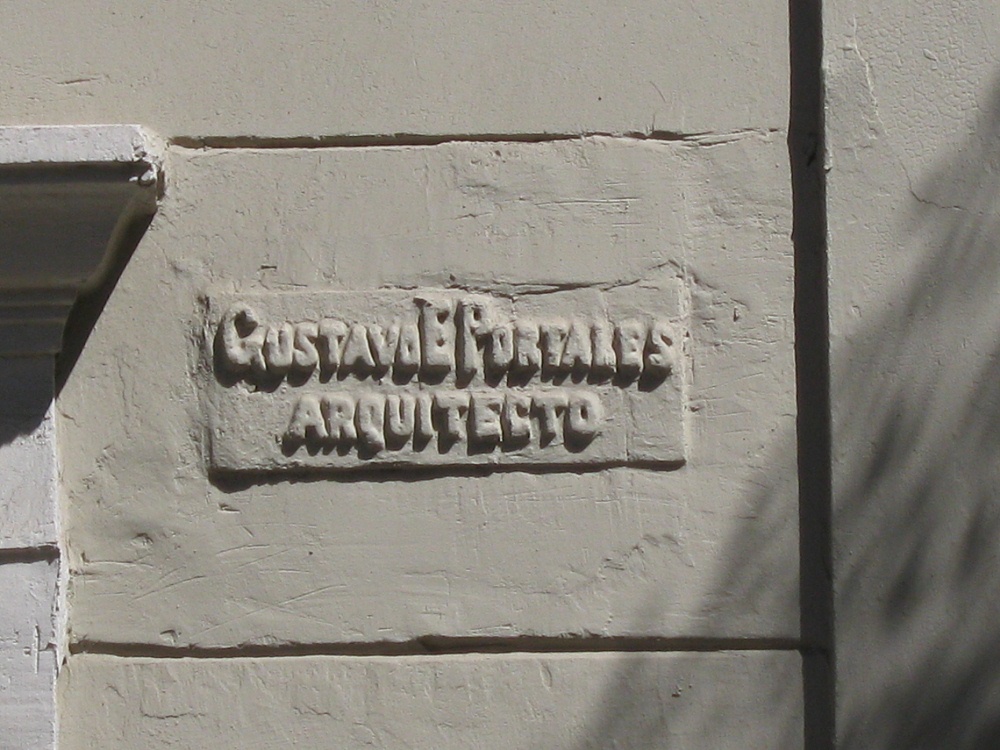 Gustavo E. Portales, Architekt. Ein solch kunstvolles, plastisch-dreidimensionales Namensschild hat eine grosse Ausstrahlung und ist äusserst selten, hier vor allem, weil das Schild auch auf jegliches Metall und Gold verzichtet.