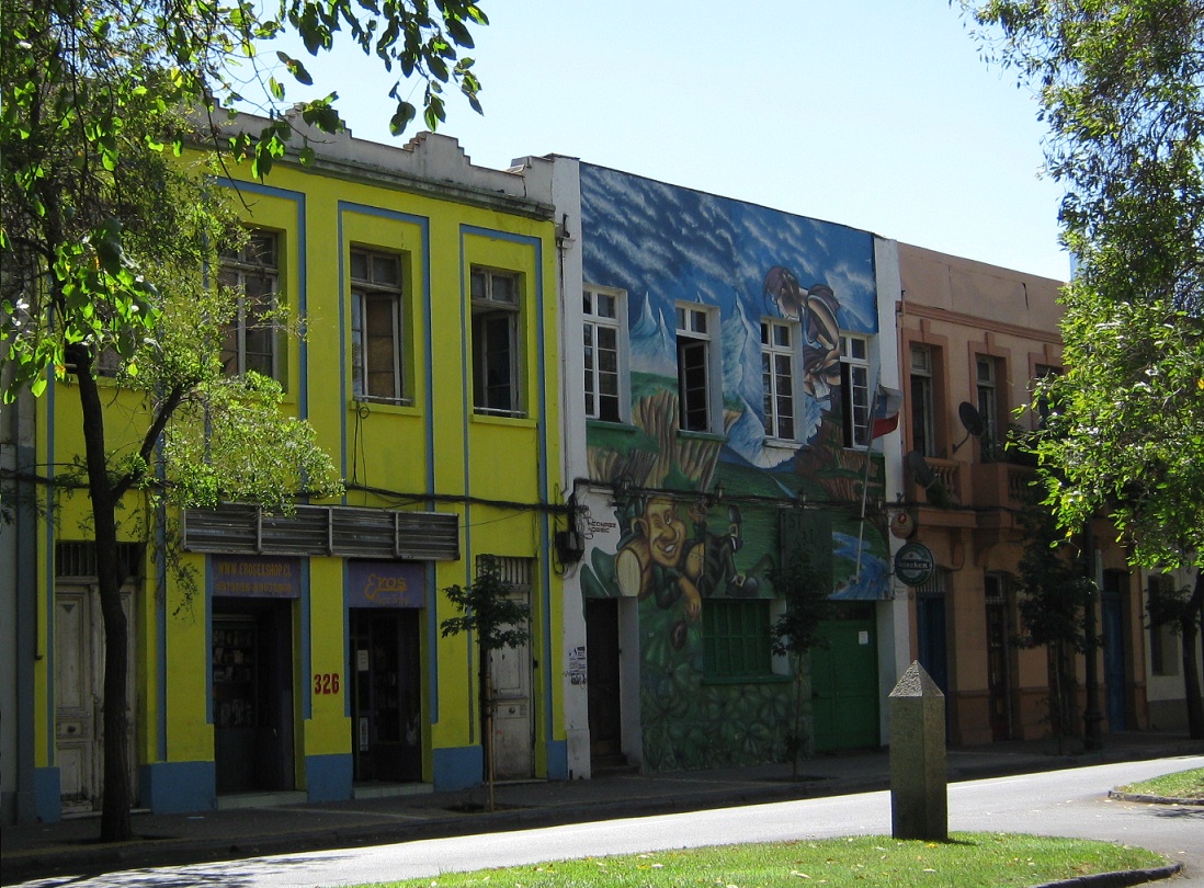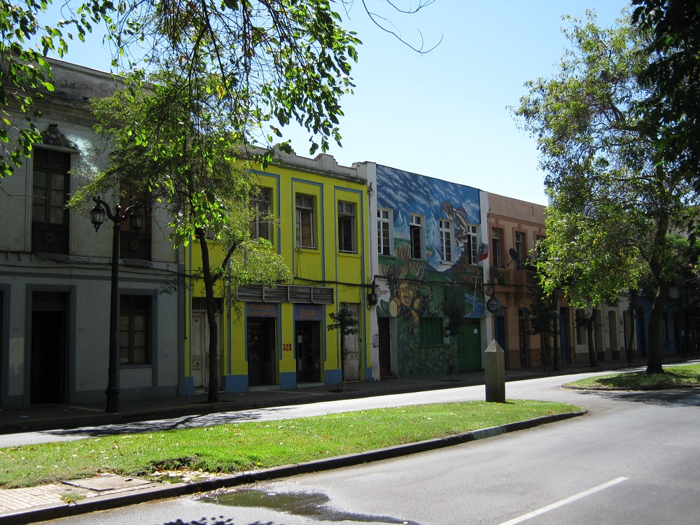Waisenkinderstrasse (calle Huérfanos) und Matucana-Strasse, blaues Eckhaus