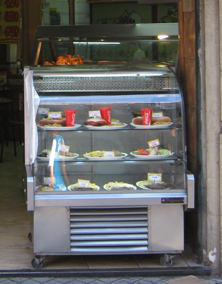 Das Restaurant "Tutto Pollo" im Zentrum von Santiago de Chile, die Vitrine