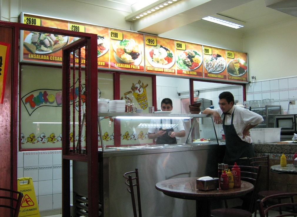 Das Restaurant "Tutto Pollo" im Zentrum von Santiago de Chile, der Eingangsbereich