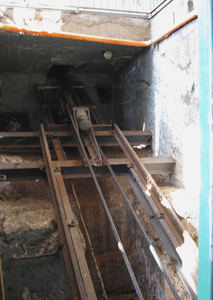 eine Ende der Standseilbahn. Das Seil auf der