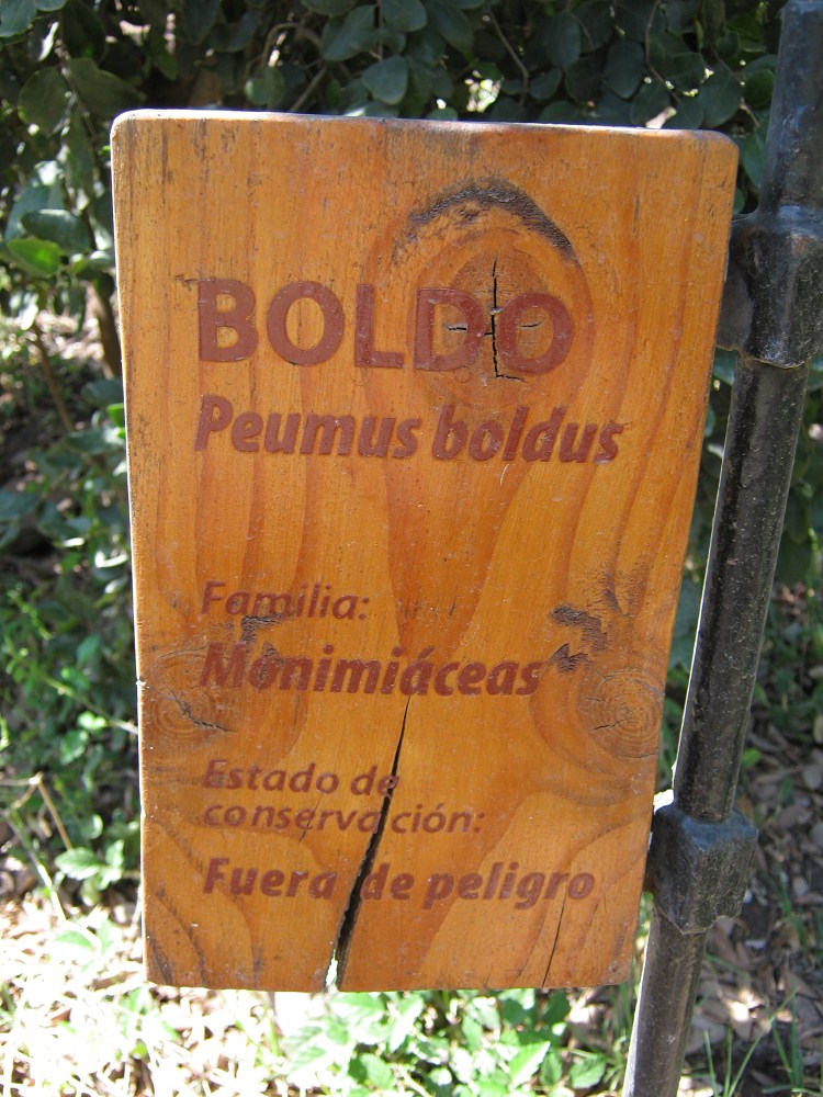 Und ein Baum ohne Namen (die Tafel unter dem Baum ist falsch, gibt Peumo an, aber es ist nicht derselbe Peumo wie vorhin)