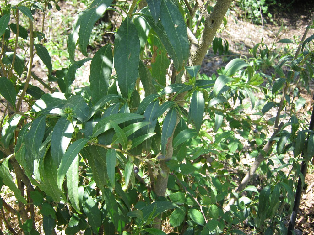 Die Blättchen des Hammerstrauchs (span. Palqui, lat. Cestrum palqui)