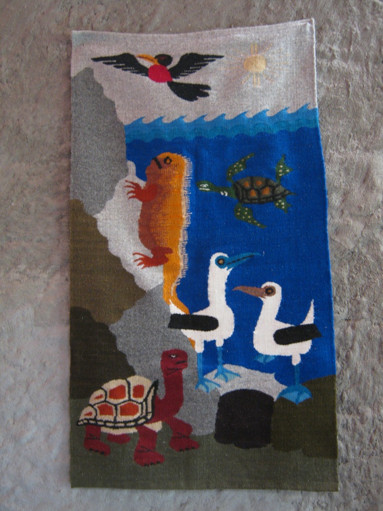 Wandteppich mit Galapagos-Motiven: Vogel, Leguan,