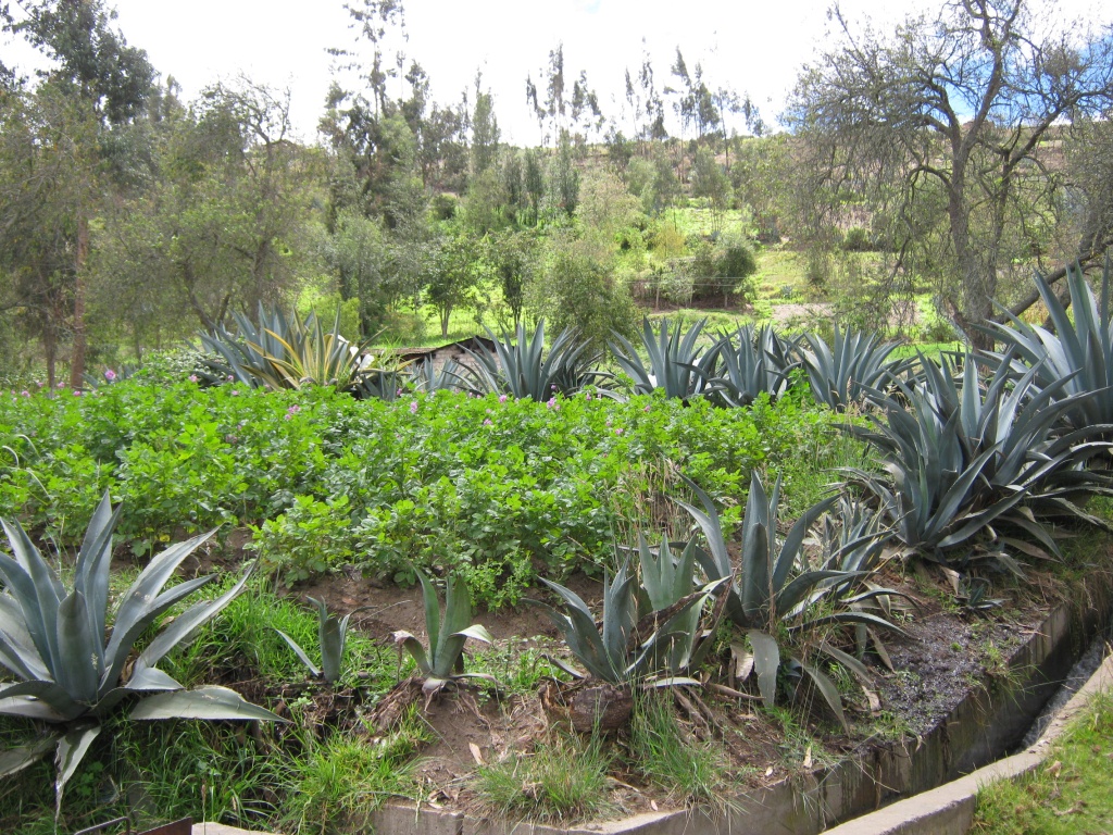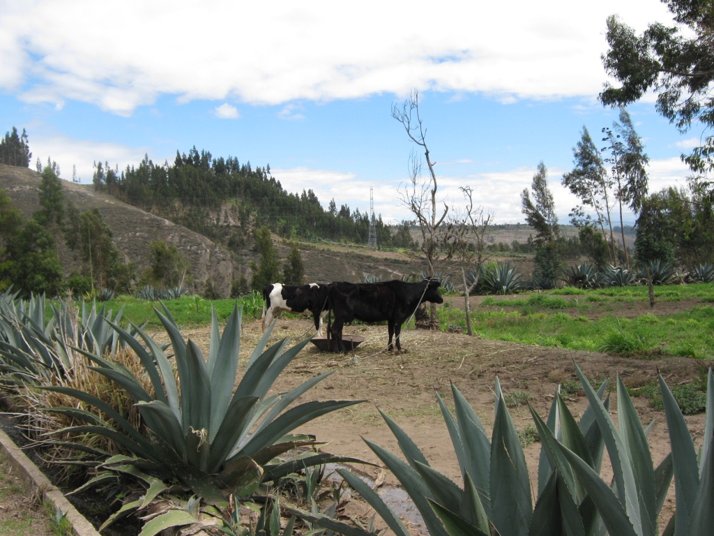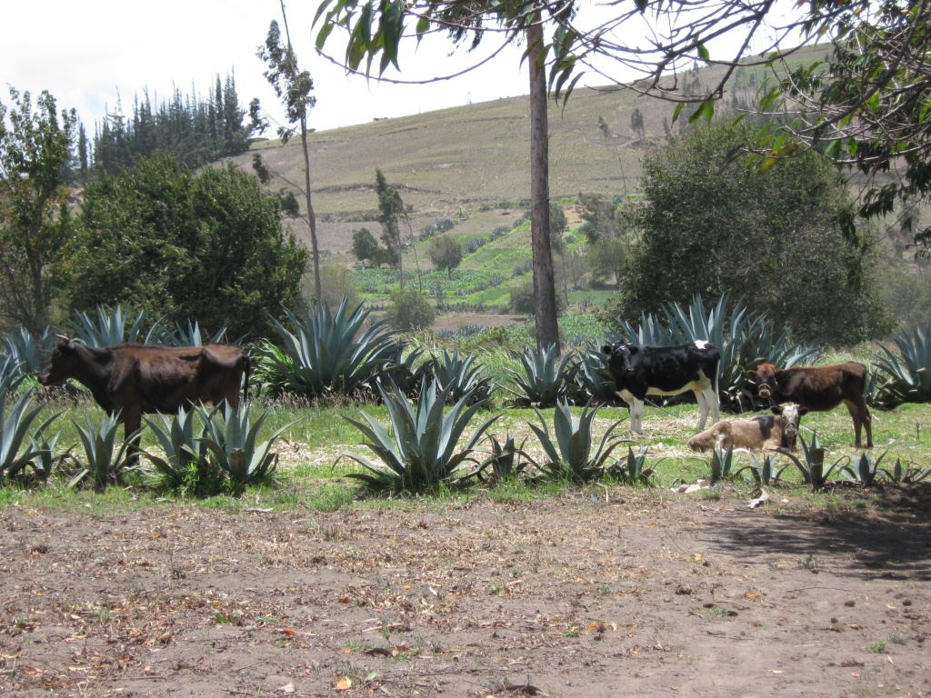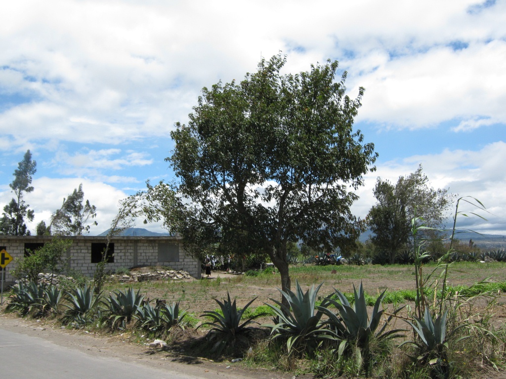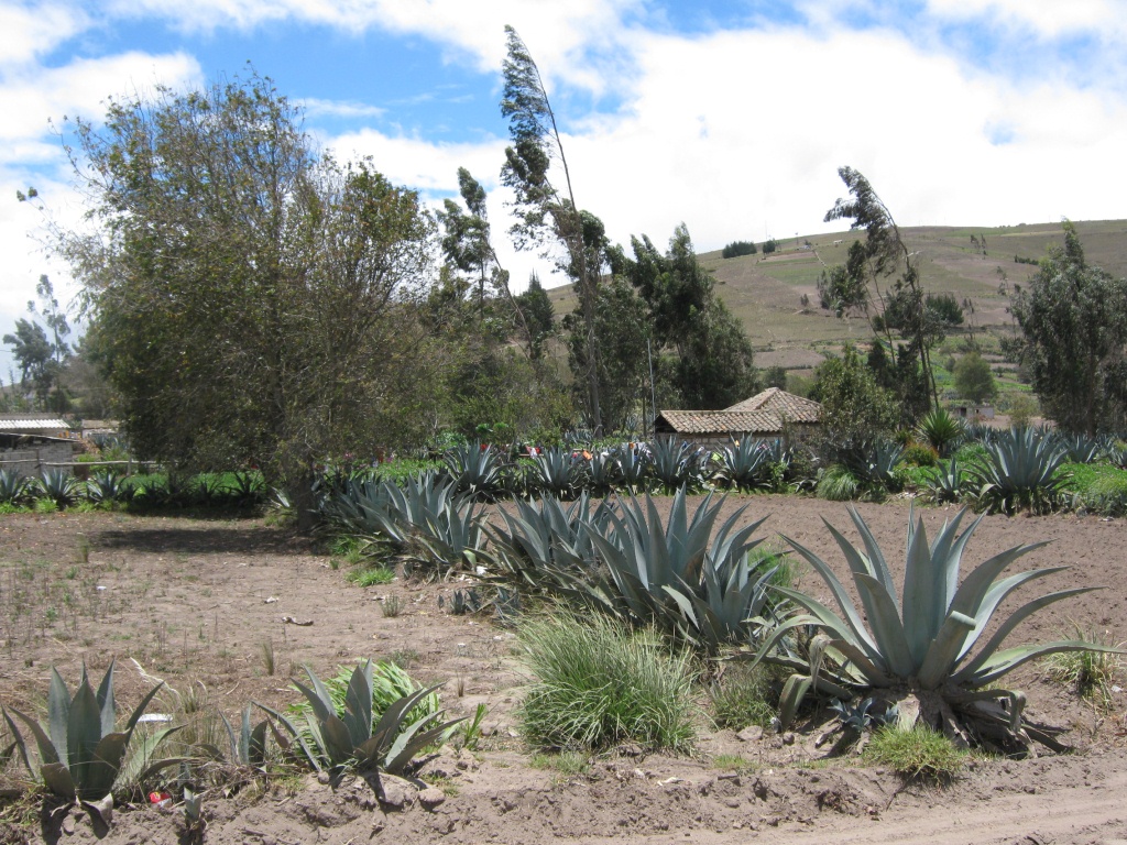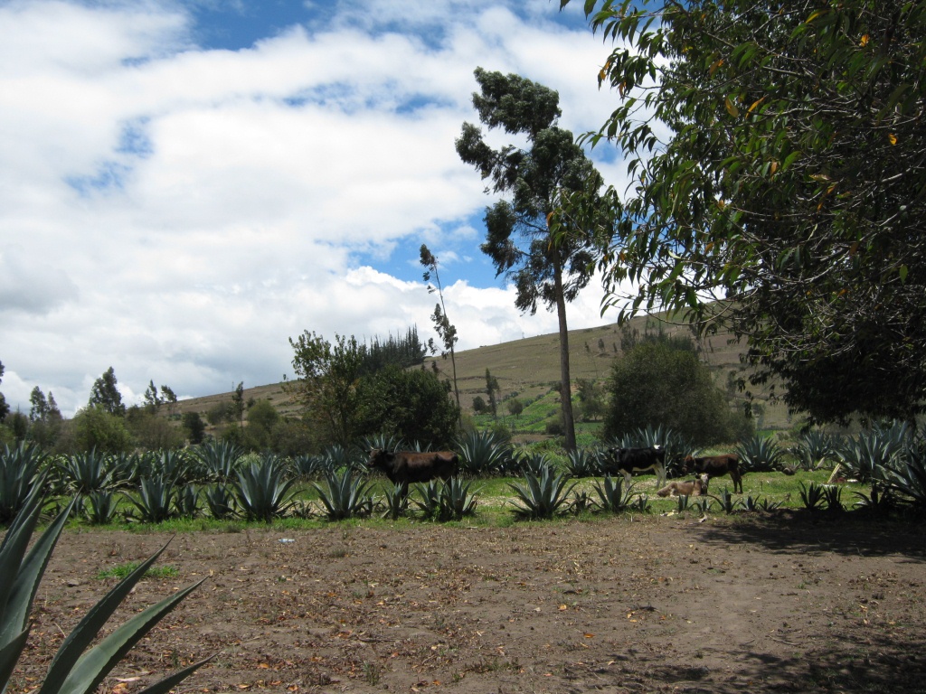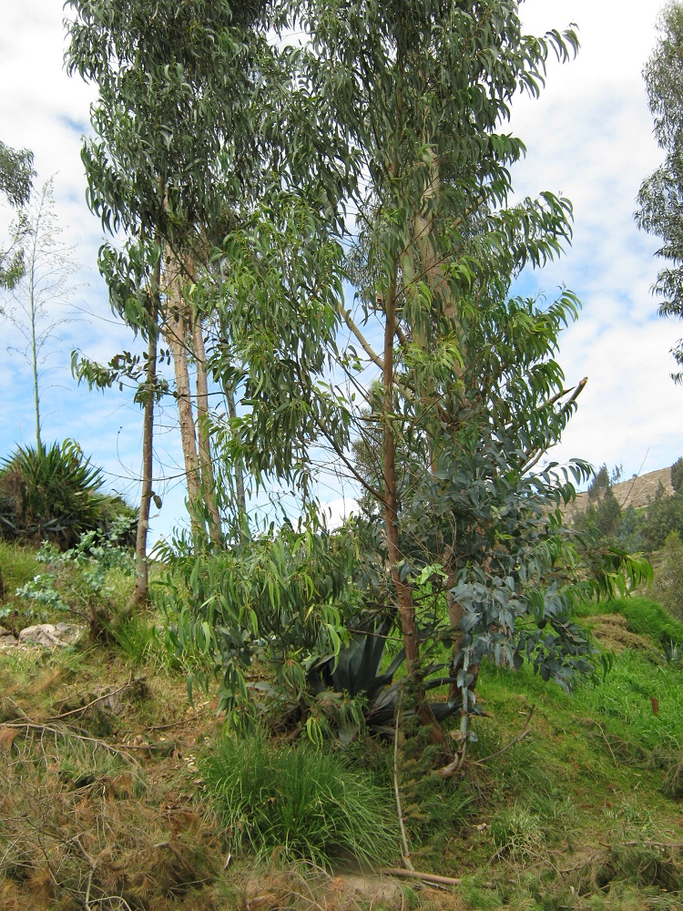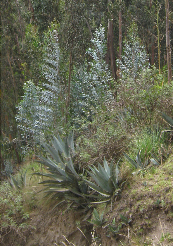Bäume, und dazwischen eine Cabuya und vorne dran ein junger Eukalyptus