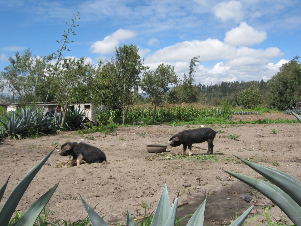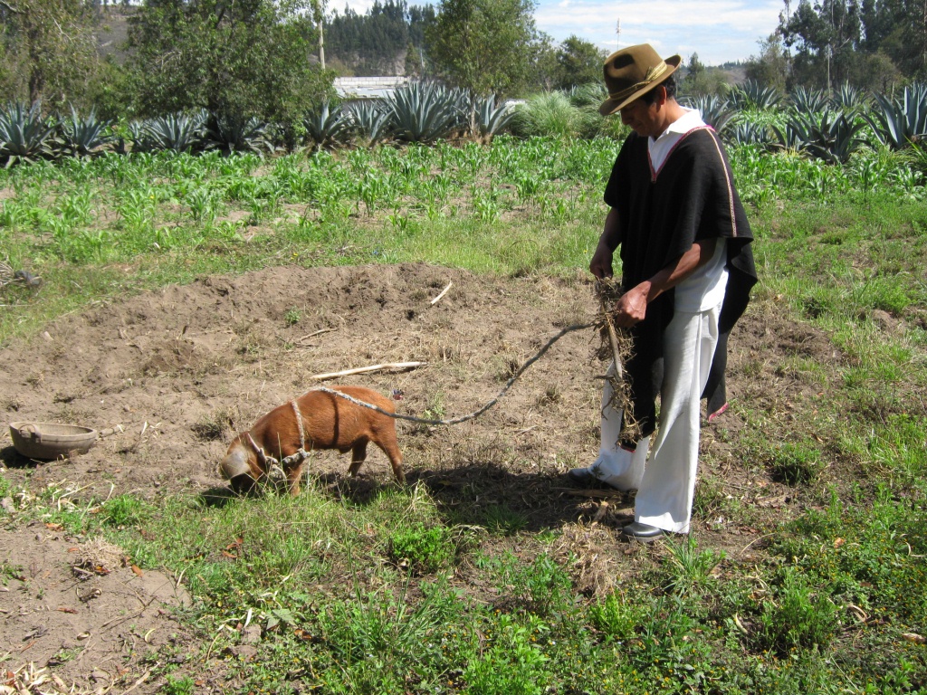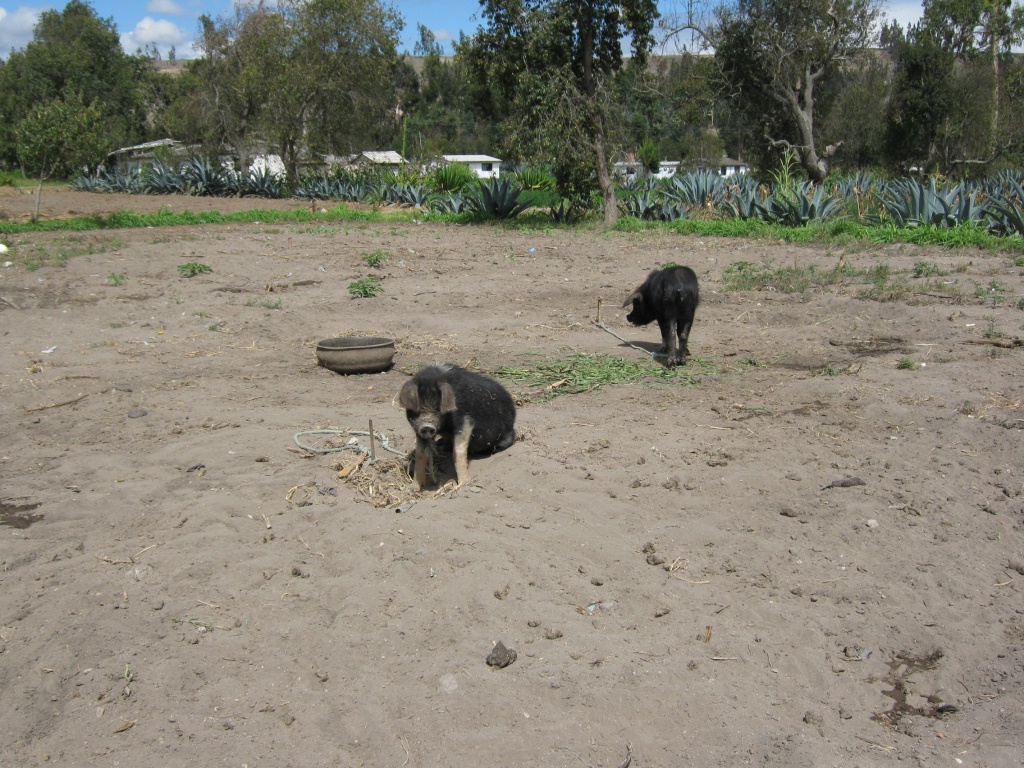 Auf den nächsten Fotos demonstriert José, wie man den Pflock versetzt, so dass ein Schwein neues Futter bekommt.
