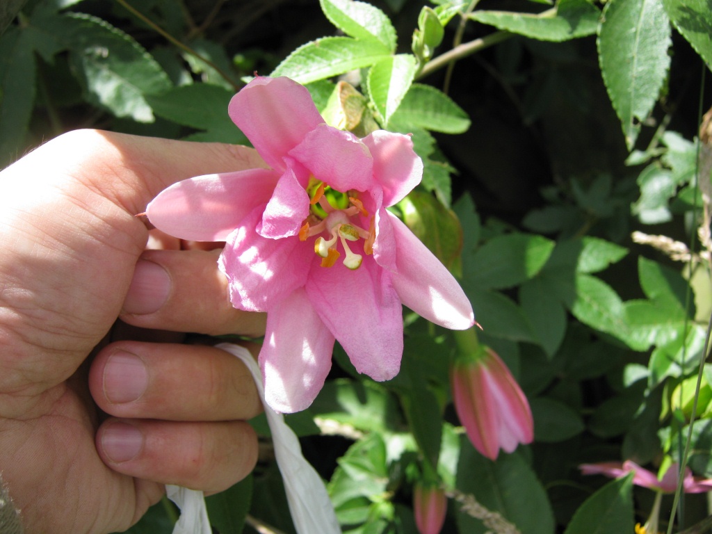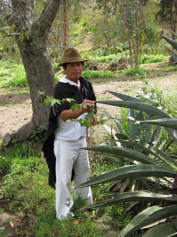 José an einem Ableger des Taxo-Strauchs (Curuba-Strauch)