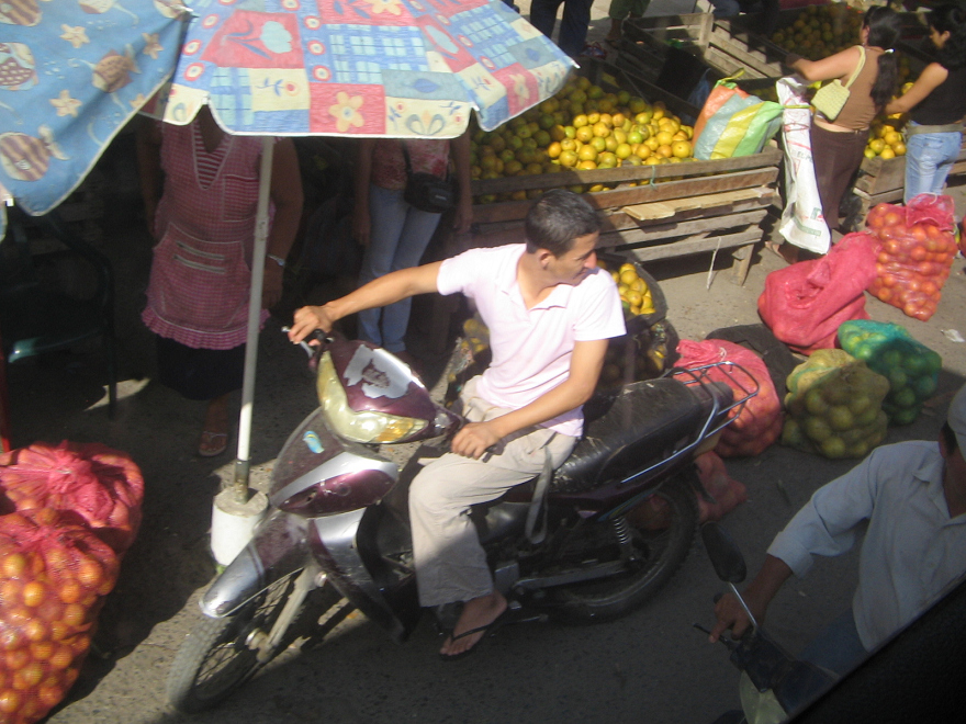 Huaquillas, Strassenmarkt (08), Vespa am