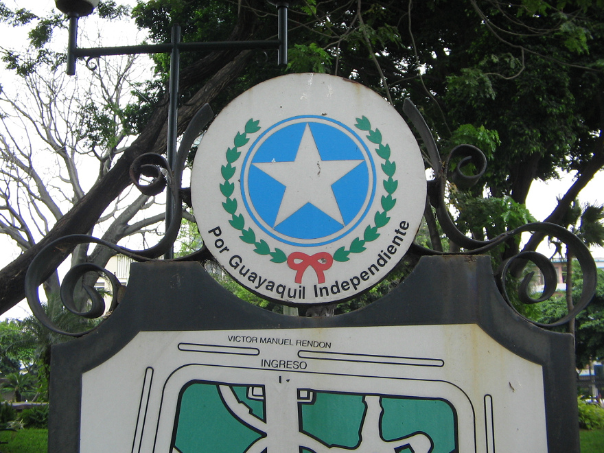 Guayaquil, Tafel und Wappen am Jahrhundertplatz