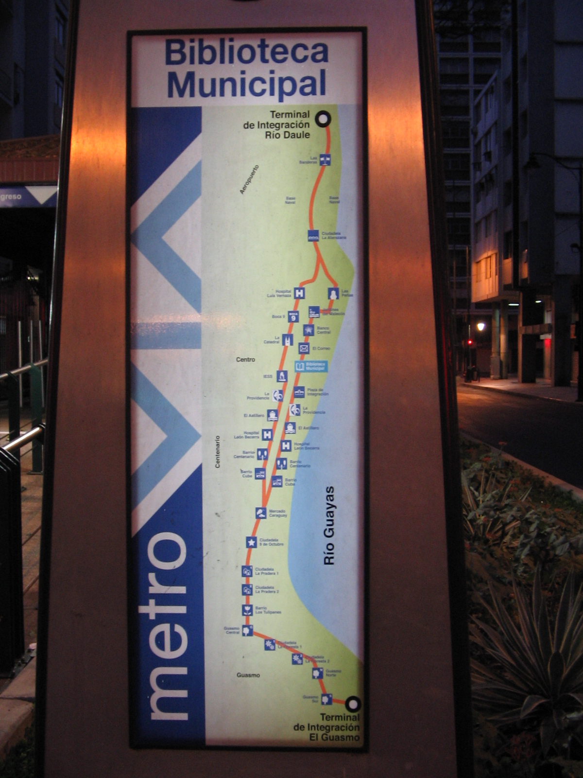der Metrobus auf der Fahrt zum "Terminal Río Daule"