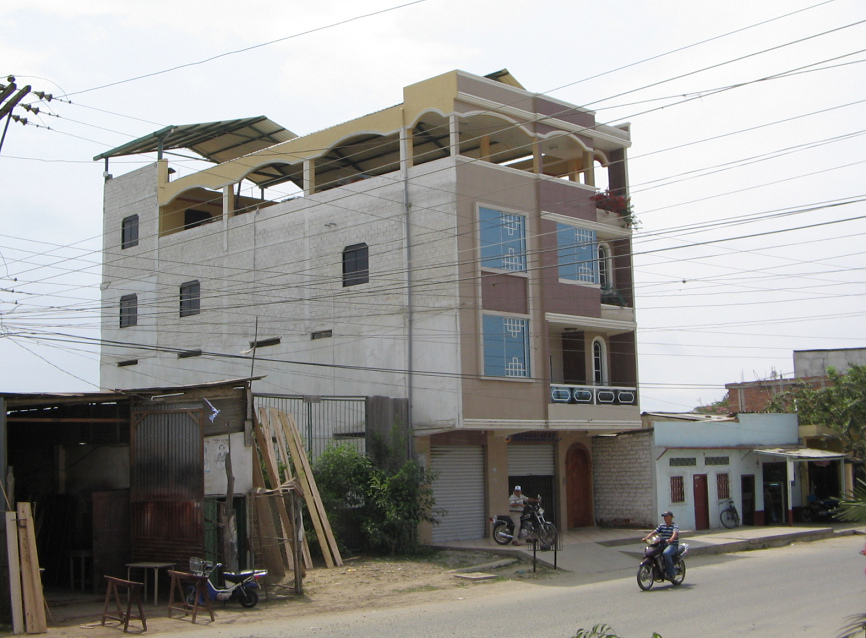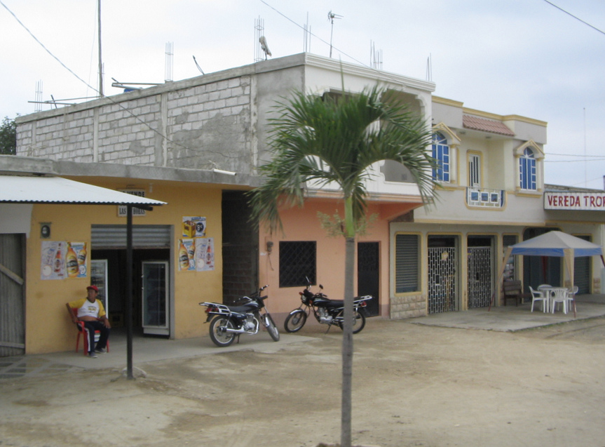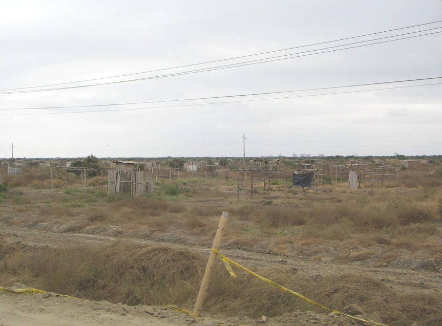 Einige Leute scheinen in Huaquillas mit Handel und konsequentem Sparen wirklich grosse Häuser bauen zu können. Andere bleiben bei einem Stockwerk. Im Gegensatz dazu zeigt dieses Foto von Huaquillas einen Kanal und Holzhäuschen im Hintergrund [20].