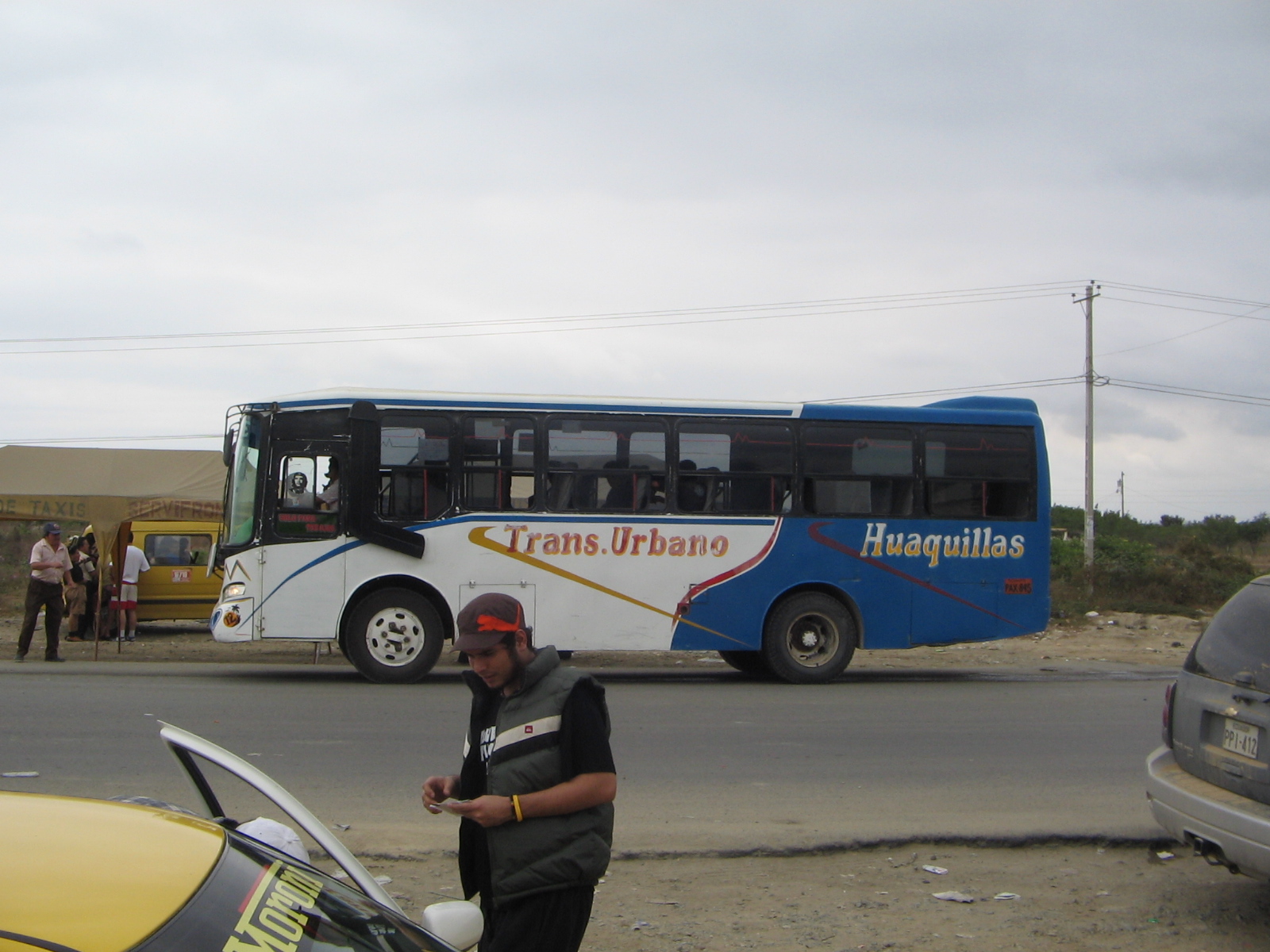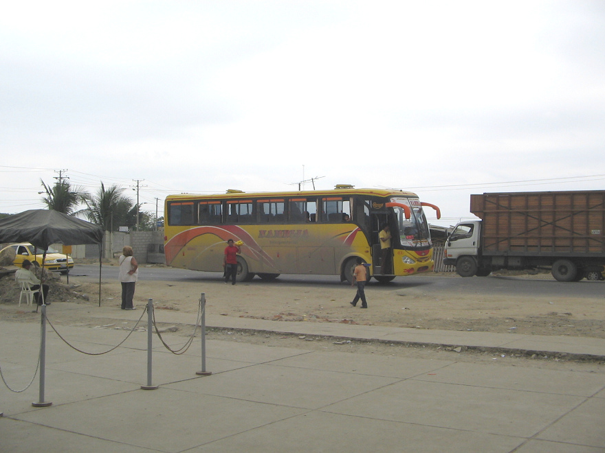 Die ecuatorianische Zollstation vor Huaquillas wird von relativ vielen Buslinien bedient. In den 40 Minuten Wartezeit waren es sicherlich Busse von etwa 10 verschiedenen Busfirmen.