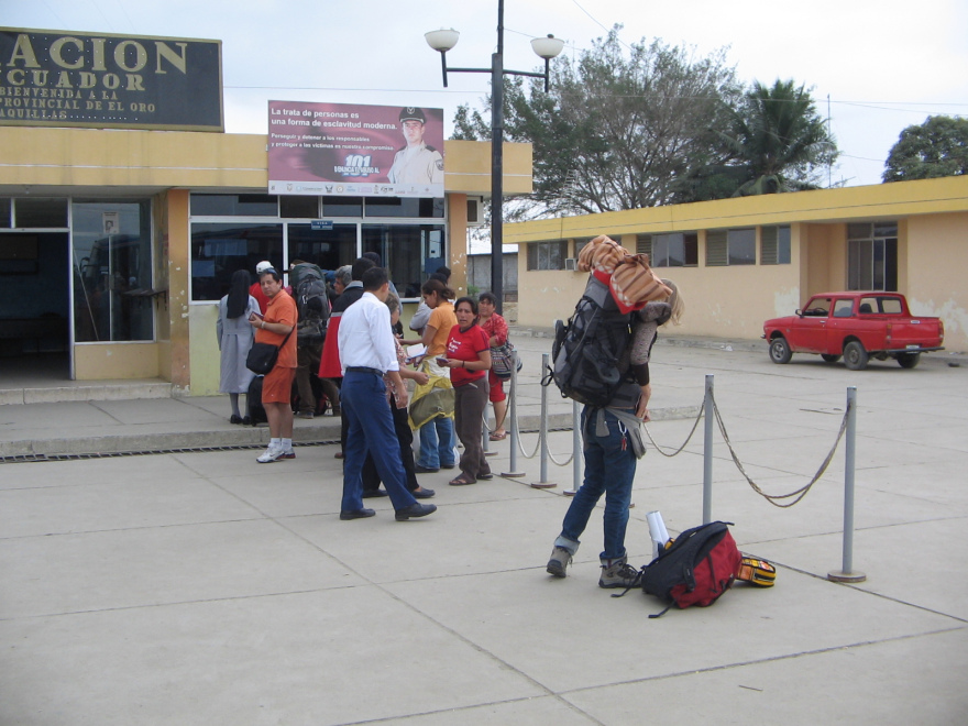 Am Busterminal Huaquillas hiess es umsteigen. Die Leute, die nach Peru wollten, mussten in einen anderen Bus. Das erscheint logisch.