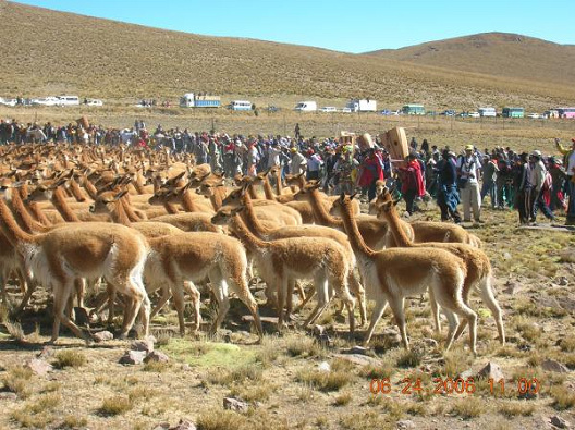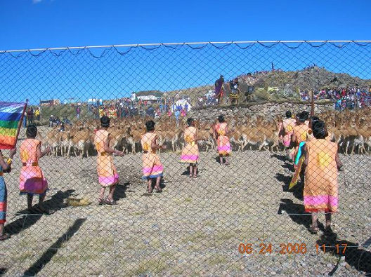 -- die Menschen-Seil-Kette formen - der Zaun mit der Menschen-Seil-Kette - Vikunias 1 - Vikunias 2 mit Scherentanz - Vikunias 3, Nahaufnahme - Inka-Zeremonie: http://www.viajeros.com/diario-2407.html