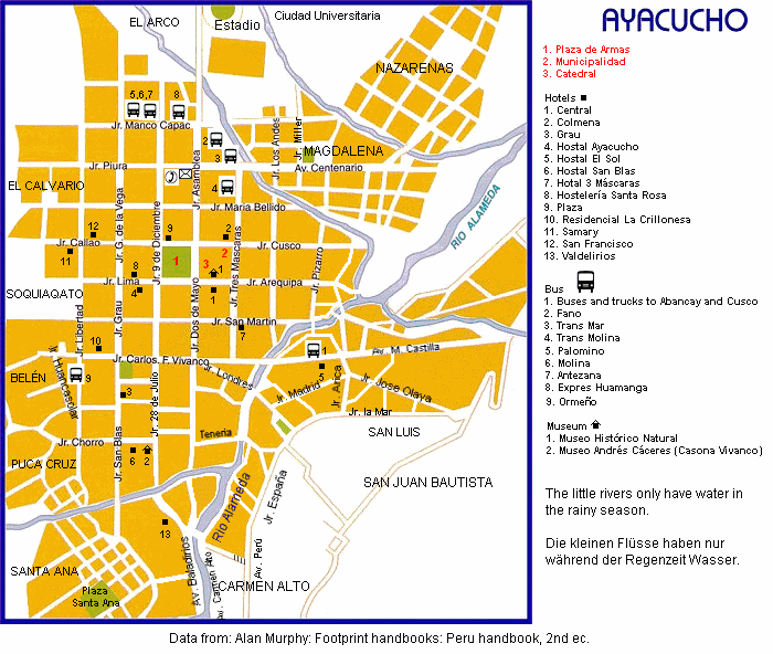 -- Stadtplan von Ayacucho, Zentrum: http://www.peru.info/s_ftociudades.asp?ids=1286&ic=1&pdr=649&jrq=3.5; http://www.peru.info/planos/ayacucho.jpg