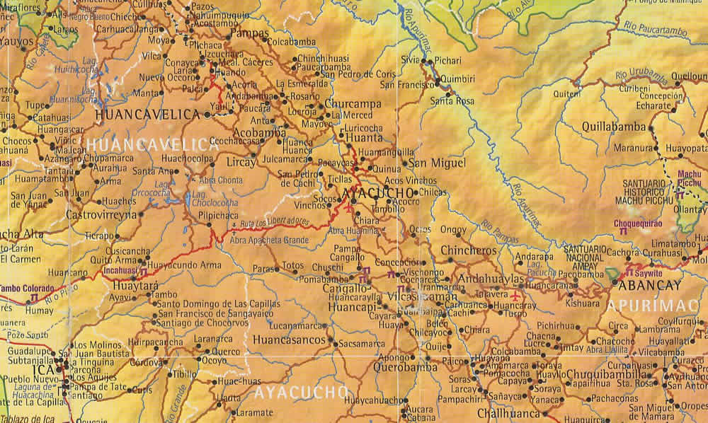 -- Karte des Gebiets um Ayacucho mit Relief und Flusssystem: http://www.peruline.de/peru/images/pics/Karten/Karte_Ayacucho.jpg