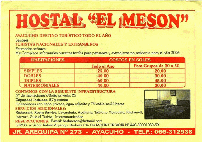 de diciembre no. 251, Ayacucho, Perú, tel.