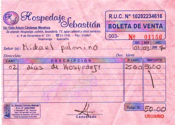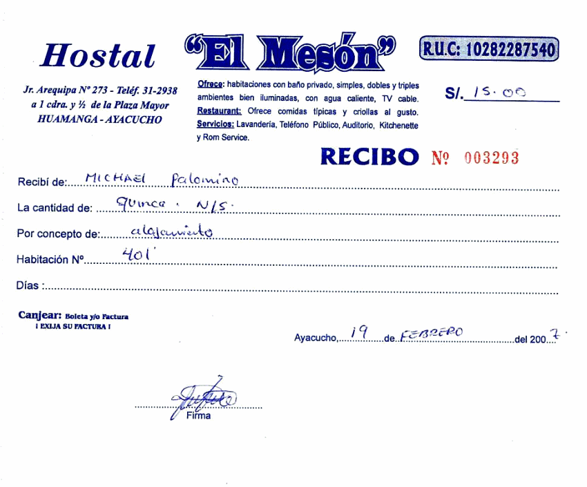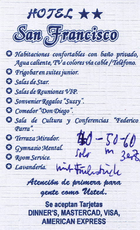 Herberge Hospedaje Sebastian vom 1.3.2007, Jiron 9