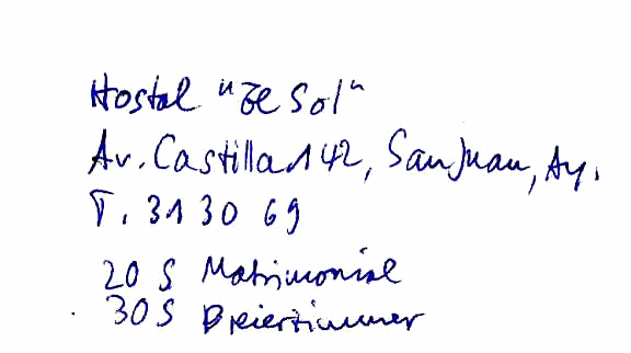 des Hostal "El Sol", Notizzettel, Avenida Castilla