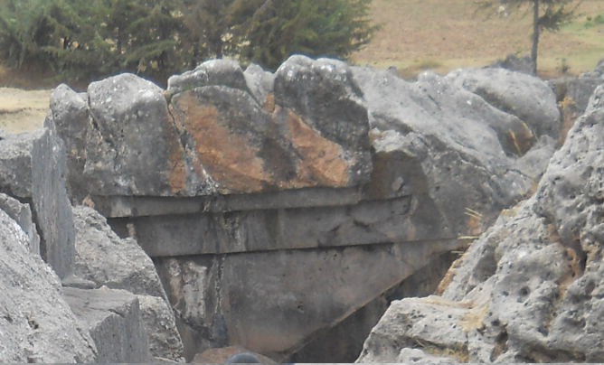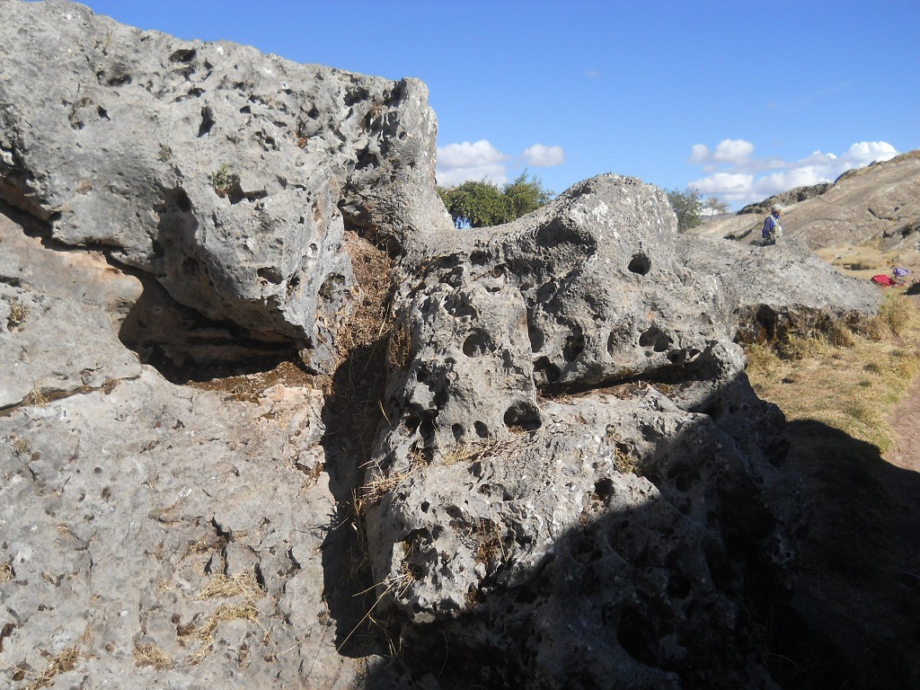 Sacsayhuamán (Cusco), grosser Steinbruch, Löcherstein 1,2