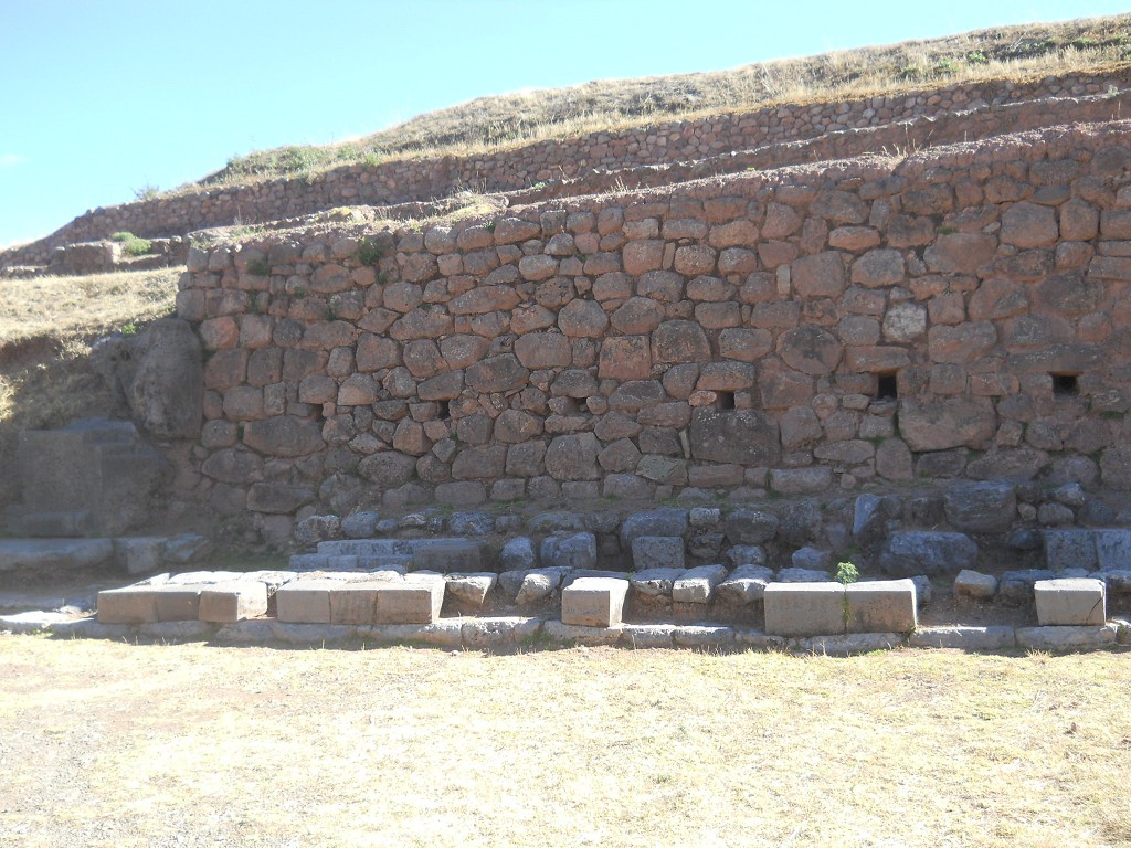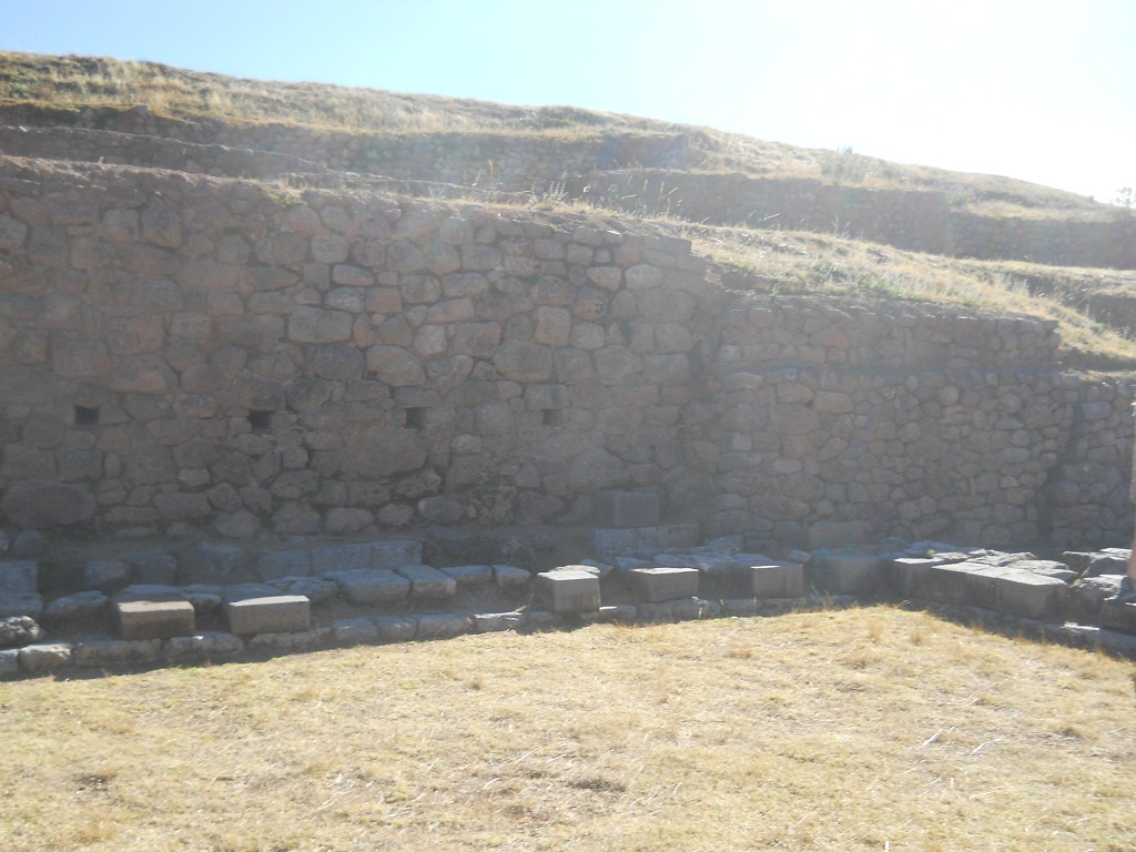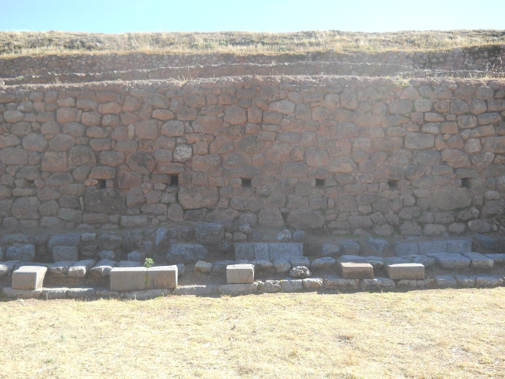 Sacsayhuamán (Cusco), grosser Steinbruch, die grosse Mauer mit rechteckingen, fast quadratischen Löchern 1,2,3