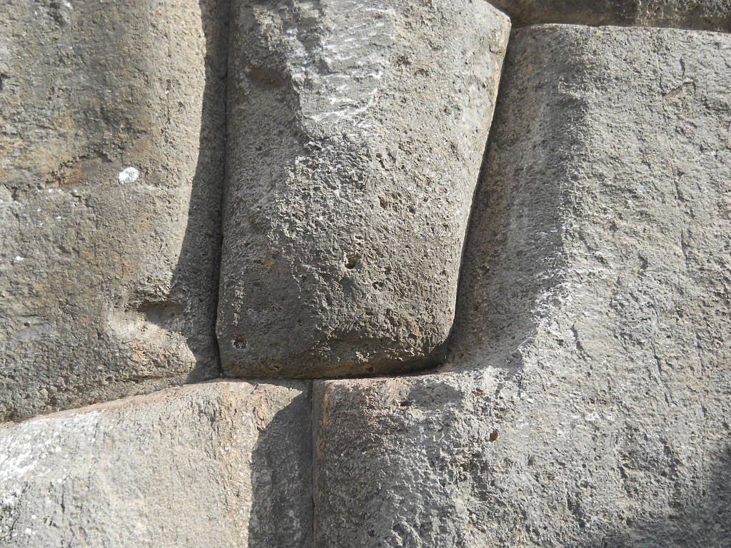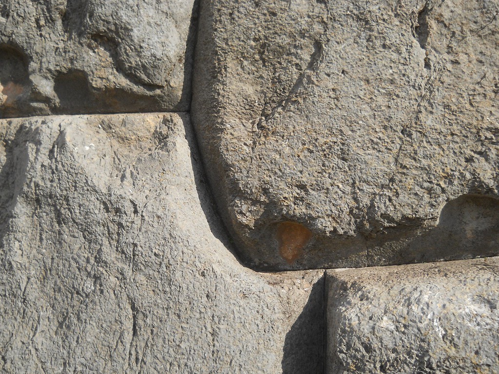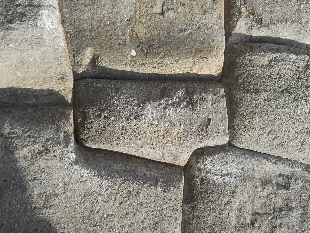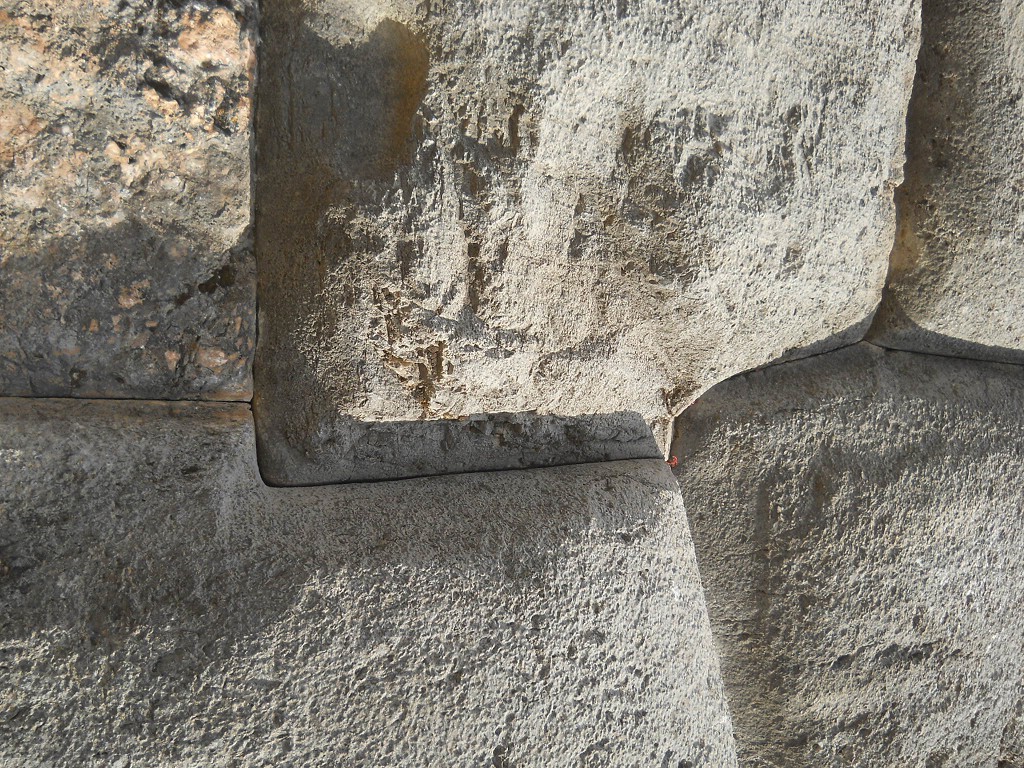 Details of the walls of Sacsayhuamán: precision of cut stones accurate to the mm without mortar, inclined and quakesafe